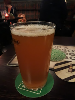 Hyvän aikanaan loputtua suuntaisin kohti Black Dooria. Olin internetista etukäteen vakoillut siellä olevan tarjolla suomalaista real alea: Ruosiniemen panimon Piirimyyjä Real Ale Editionia. En osaa arvioida, kuinka oikeaoppista on laittaa caskiin 5,7% vahvuista american pale ale -tyypistä suomalaista olutta, mutta viis siitä. Maku nimittäin oli todellakin kohdallaan.
