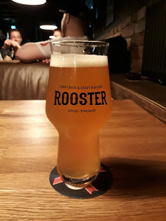 Onneksi nurkasta löytyi portaat, jotka johtivat hämyisessä alakerrassa sijaitsevaan pubi & burger-paikkaan. Hanavalikoima oli aika vakuuttava. Tilasin hätäpäissäni Sonnisaaren Boston Vice IPA:a ennen kuin huomasin, että paikasta olisi saanut myös Amagerin NEIPA:a. Se jäi nyt valitettavasti testaamatta, mutta muulta seurueeltamme kyseinen juoma sai kehuja. Vaan ei omakaan valintani huono ollut. Mehuisuutta löytyi siitäkin, sekä hedelmää. Katkeroita ehkä aavistuksen vähemmän, kuin Sonnisaarelta yleensä eli omalla mittapuullani juuri sopivasti. Reissun selvästi paras olut. Roosteriin tulee kyllä aivan ehdottomasti palattua jos – ja todennäköisesti kun – Ouluun vielä uudemman kerran päädyn.