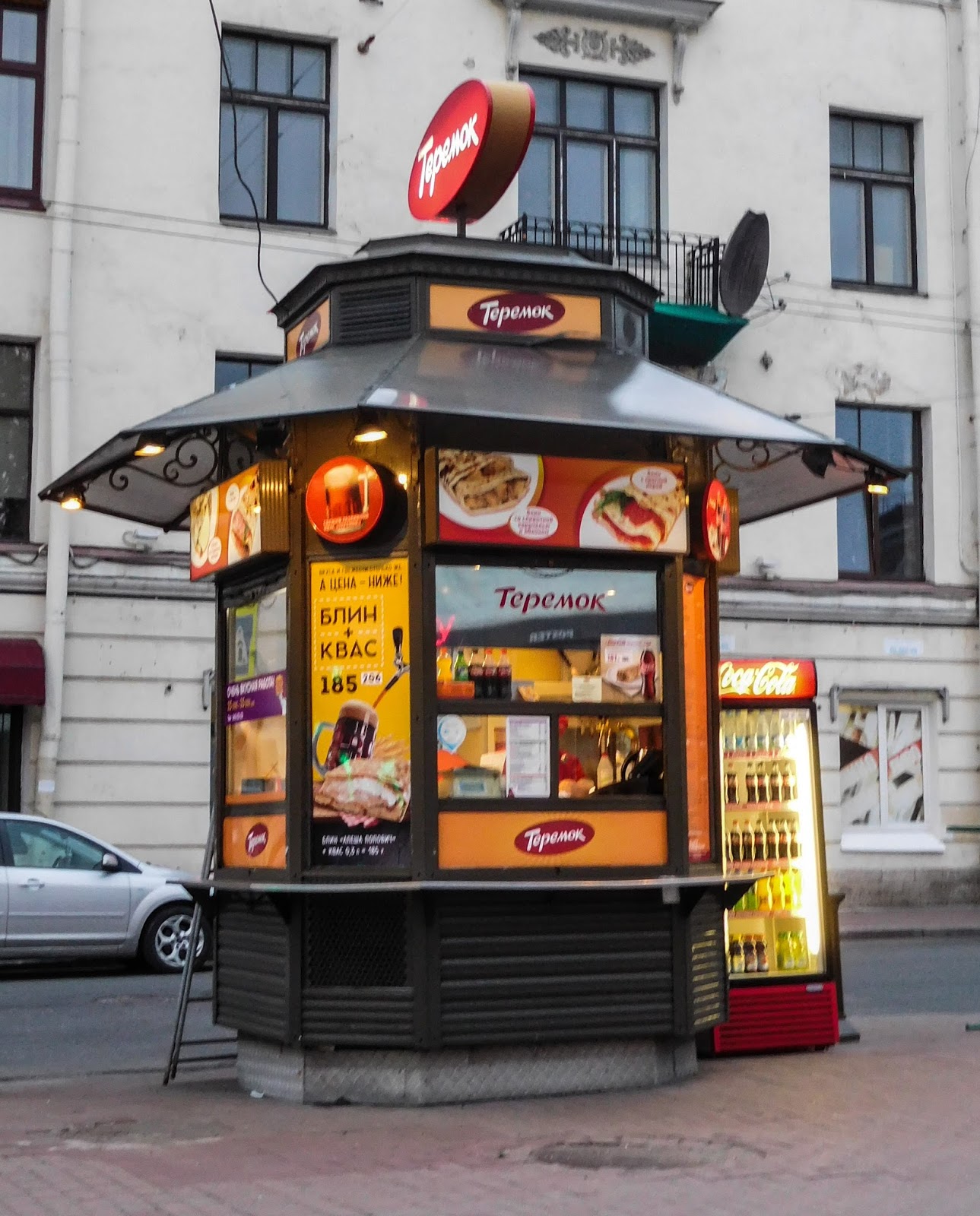 kanssa ihan kahdestaan. Kaupunki oli muuttunut reilussa kymmenessä vuodessa melkoisesti. Alkoholia ja tupakkaa myyneet pikkukioskit olivat vaihtuneet kahvia myyviin kojuihin. Savukointia oli muutoinkin suitsittu rankalla kädellä. Tiukentunut alkoholilainsäädäntö oli myös kieltänyt kävelyoluet, nuo Nevski Prospektin tallaamista jouduttaneet, aiemmin pietarilaisten suosimat janonsammuttajat. Aivan kaikki ei kuitenkaan onneksi ollut muuttunut. Blinejä ja muita venäläisen keittiön herkkuja myyneet Teremok-pikaruokaravintolat olivat edelleen voimissaan. Ilahduttavaa oli myös huomata, että välillä ilmeisesti jo lähes hävinneet kansanruokalat olivat tehneet paluun. Hinta-laatu-suhteeltaan ne olivat usein lähes ylivoimaisia.