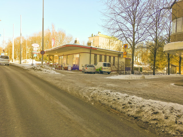 Hellohan on tälläinen ikivanha huoltis, jossa on joku feikkiohjuskin pihalla. Classy.