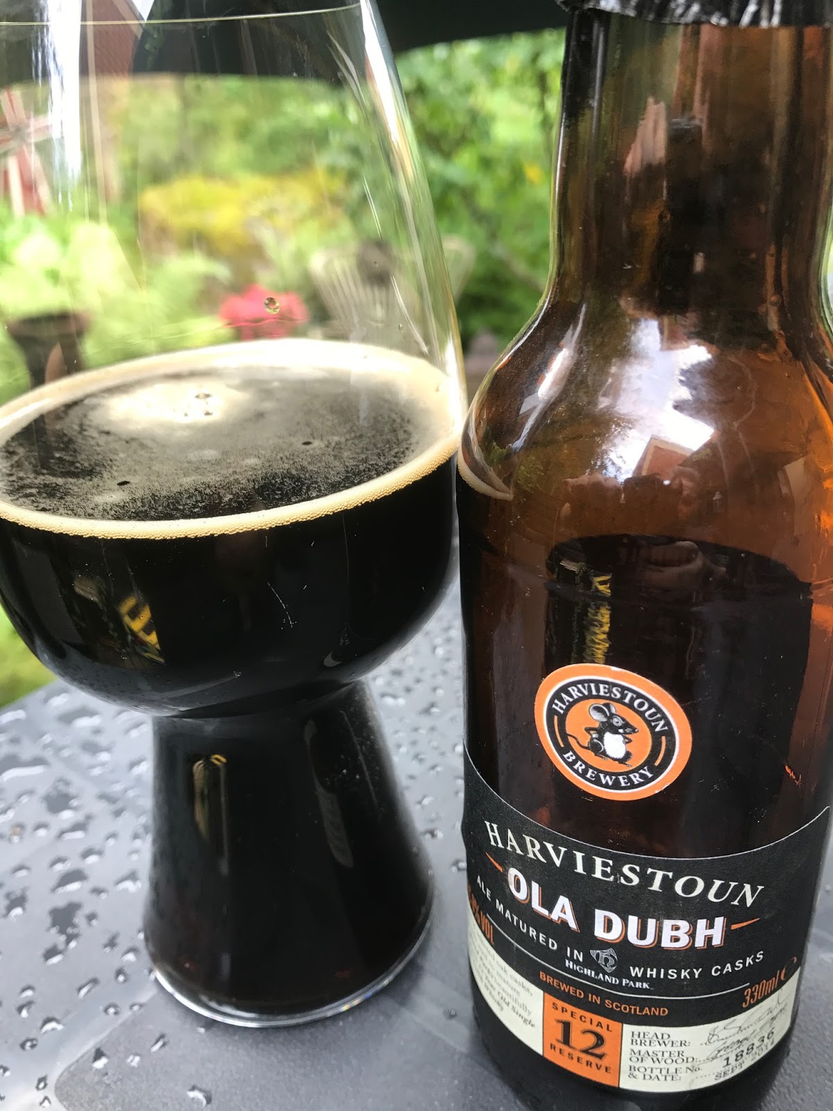 Toinen tämän skotlantilaisen craft beer -panimon musta olut muistui heti mieleen kun tutkailin tämän oluen etikettiä. Olut on mustaa, vaahtoa ei juuri kerry. Tuoksu on moninainen, toffeen makeutta, turvetta, olisiko viskiäkin, kahvia, suklaata ja salmiakkia. Maku toistaa tuoksua. Lakritsaa, kahvia, suklaata, tujaus viskiä. Viski on mukavasti vain taustalla, ei pääosassa, mutta makuvalikoimasta sen voi halutessaan nostaa esille. Hieno olut on kyllä. Onnistunut viskitynnyreissä kypsytetty olut. Mukava lämmin viskimäinen jälkimaku lämmittää vatsassa saakka. Kai se on uskottava että olutta ja viskiä voi yhdistellä. Olut on odotellut vuoroaan jonkin aikaa, pulossa on numero 18836 ja parasta ennen päivämäärä on Sep 2017, eipä tämä olisi varmaan huonontunut vaikka olisi vähän mennyt ylikin. 330 ml, 8 %, 5/5