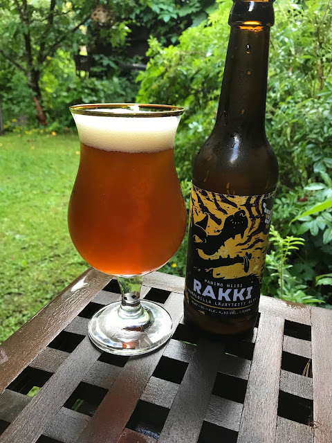 Maalasin koko päivän tomaatilla ja saunan päälle oli saatava yksi olut. Juu tomaatti oli siis maalin värisävy. Vanhemmat toivat nimipäivälahjaksi jokin aika sitten pari Hiisi-panimon olutta ja tämä sopi nyt hyvin tähän tunnelmaan. Väritys on kuparinen ja olut verhoutuu tiiviiseen valkoiseen vaahtoon joka kestää melkein koko nautinnon ajan. Tuoksu on hedelmäinen, maku ei niinkään, enemmänkin havuinen. Makua todella läjäytetty humaloilla, maku on miellyttävän katkera. Katkera greippi tasapainottuu vähän makeudella. Maku jää mukavasti pyörimään kitalakeen, mutta jotenkin vaikka humaloita on reilusti, niin olut maistuu ohuelta, ehkä se on maitokauppaoluen ongelma. 39 IBU, 23 EBC, 330 ml, 4,5 %, 4/5