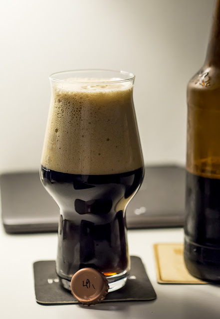 Sitten maistoon veljeni J:n jouluna toimittama kotiolut, joka on järjestysnumeroltaan 49 ja tyyliltään Brown Ale. Joulupäivänä tätä jo maistelimme kohtalaisen runsaan sahdinmaistelun lomassa ja totesin kaman varsin hyväksi. Sen enempää ei ollut puhetta mitä tavara sisältää. Asiaa olisi toki voinut kysyä nyt jälkikäteenkin, mutta vedetään nyt tämä kotimaistelukin ihan näin mistään mitään tietämättä, niin eipä sitten ainakaan pääse vaikuttamaan maistelun lopputulemaan. Vahvuuskaan ei ole tiedossa.
