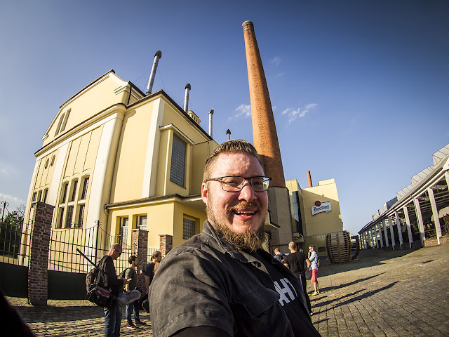 Noin tunnin ajon jälkeen takatukka jättää meidät hotellin oven eteen. Sisällä on nimi listassa ja sisäänkirjautuminen käy vaivatta. Minulla, Jaskalla ja Jamesillä on viereiset huoneet, kiva juttu. Aikataulu kertoo, että ensimmäisen dinnerin alkuun on noin tunti. Poistumme huoneisiimme tiputtamaan matkatavarat ja siistiytymään. Huoneen ovi aukeaa ja vastassa on iso Pilsner Urquell kassi. Pari Urkkia on jo alla ja naurahdan spontaanisti – mitähän nyt seuraa. Kassista löytyy toppaliivi, juuri sitä kokoa, jonka ilmoitin kun kysyivät t-paidan kokoa. Liivin tarkoitus jää epäselväksi, koska ulkona on 25 astetta lämmintä ja aurinko paistaa. Mukana on myös jonkinlainen peltinen salkku, jossa on sisällä neljä tölkkiä Urkkia. Lämpimiä tietysti, joten annan niiden olla. Pöydällä on myös nimelläni varustettu kirjekuori ja tapahtuman ohjelma. Kirjekuoresta löytyvässä kirjeessä kerrotaan, että minibaarissa on ”2x complimentary Pilsner Urquell”. Miten hyvältä se kuulostaakaan, luen sen kahdesti ja sitten korkkaan minibaarista kylmän Urkin. Panimo on suoraan tien toisella puolella. Melko siistiä ja Urkkikin maistuu taas hyvälle.