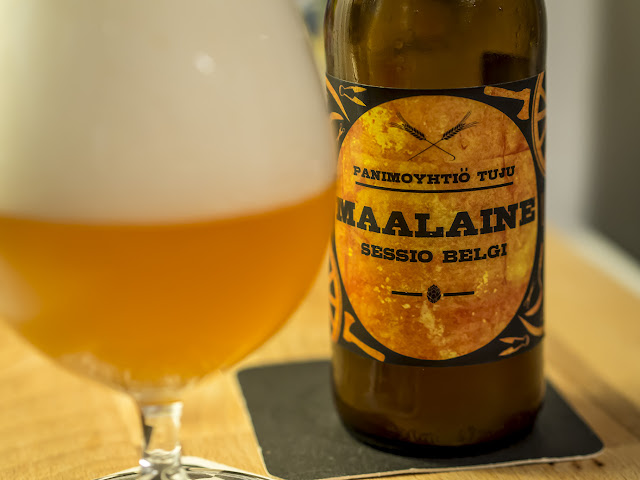 Lappeenrantalaisen Panimoyhtiö Tujun olut on harvinainen näky länsirannikon kaupoissa, mutta olen toki tämän vuonna 2015 perustetun panimon olutta päässyt jo maistamaan Pub Winstonin pienpanimojuhlilla tänä vuonna. Festivaalitunnelmassa varsinkin New England IPA Idän Samee upposi mallikkaasti. Maalaine on panimon kotisivujen mukaan uuden maailman humalilla maustettu amerikkalaistyylinen session saison.