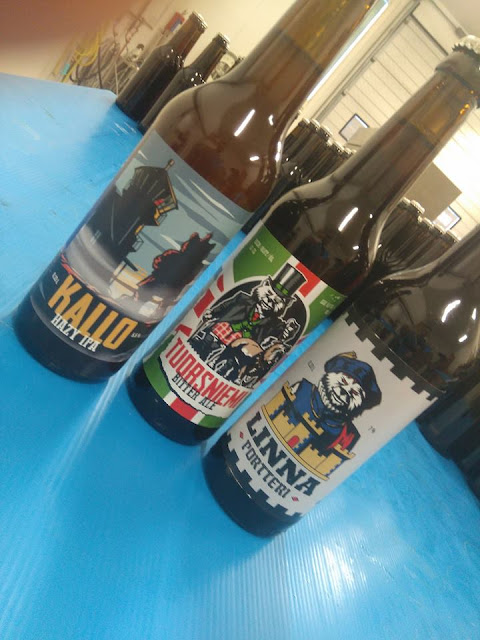 Linnan kaupunginosa sijaitsee aivan Porin keskustassa ja nyt sillä on myös oma Rocking Bear Brewersin valmistama portteri. Vahvuutta oluella on 7,0%, joten alkoholilain uudistuksen jälkeenkin tavara on liian vahvaa kauppojen hyllyille. Tämä on niin tuore tapaus, että se ilmeisesti tätä kirjoittaessa juuri lähtee panimolta eteenpäin, eli lienee ainakin paikallisista (porilaisista) ravitsemusliikkeistä saatavilla aivan näillä näppäimillä. Sain näyteputelin panimolta ennen kuin etiketit olivat saapuneet, joten omassani on vain speksit kertova plakaati, mutta alta löytyy myös panimon facebookista napattu kuva, josta Linnan etiketin voi bongata panimon kahden muun uutuuden seurasta.—