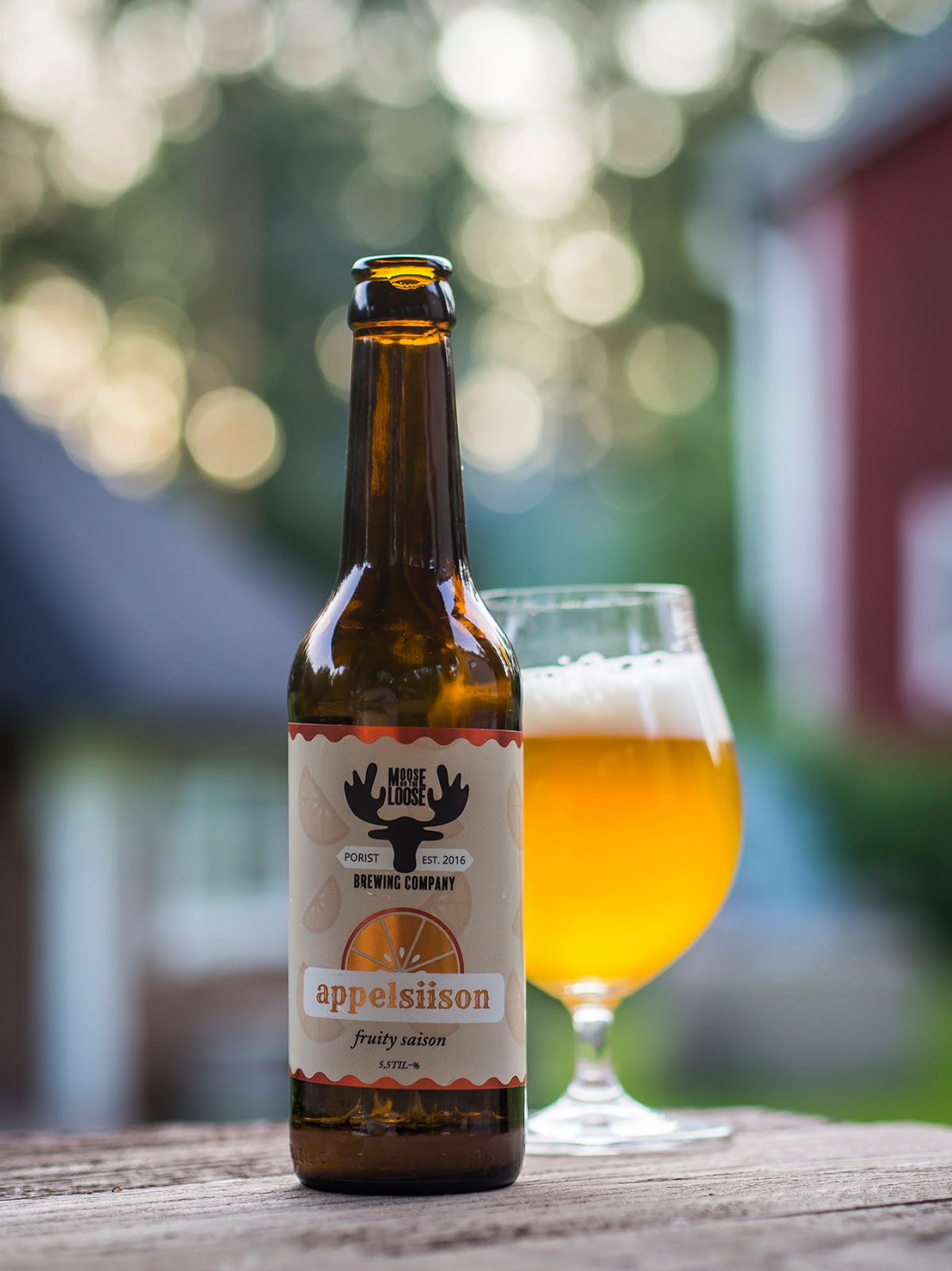 Japanilaissaison kaatuu lasiin oranssihtavana ja melko kirkkaana. Tuoksu on jännän sitrusmainen, hieman teelehtimäinen ja ehkä limemäinenkin. Selvästi erilaista, mutta yhtä kaikki raikasta vibaa niin kuin eurooppalaisissakin saisoneissa. Selkeää mausteista belgihiivaisuuttakin menossa mukana, eli saisoniksi tunnistaa vaivatta. Sitrusmaisuus selittyykin googlettelulla, sillä yuzu on sitrushedelmä. Näin sitä olutta juomalla oppiikin taas jotain. Maku on myös varsin mainio aluksi, sillä sitrus ottaa omalla ja nyt siis ilmeisesti yuzumaiseksi lokeroitavalla twistillään ensin tilan haltuun. Parin siemauksen jälkeen alta paljastuu kuitenkin makeahko ja katkeroltaan melko pliisu pohja, jossa ei saisonhiivan tuottamaa esterisyyttäkään liiaksi ole ja hiilihapotkin turhan maltilliset tähän tyyliin. Hyvä sitruksen puraisu kuitenkin. Selvästi taas erilainen kokemus tähän kattaukseen. Sijoitan kategoriaan varsin jees, koska ilokseenhan tätä juo ja ottaisin vielä toisenkin, mutta huippujen hekumaan jää kurottavaa.Moose On The Loose Appelsiison