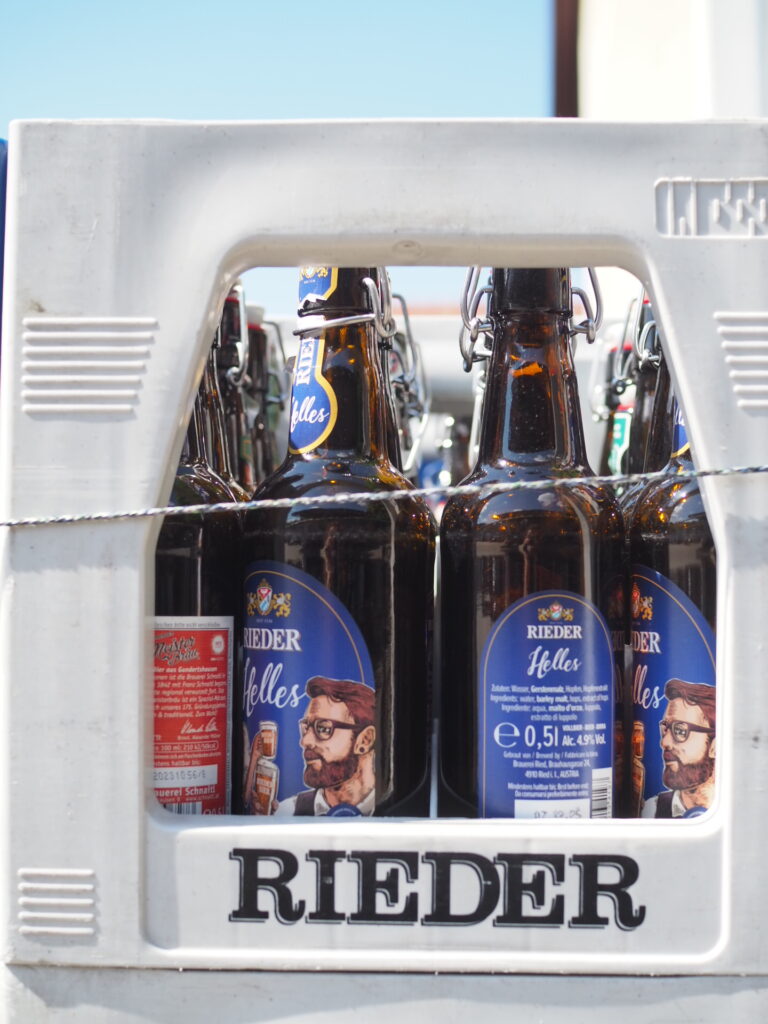 Ried im Innkreis on ollut välillä osa Baijeria, ennen kuin se palautettiin takaisin osaksi Itävaltaa ja oluentekoperinne nojaakin vahvasti Saksaan, oluina dominoivat erilaiset lagerit, kuten helles, export ja märzen. Tuopit ovat isoja ja olut helposti juotavaa. Olutta kuluukin paljon, koska markkinoita on järjestetty vuodesta 1867 ja edelleen markkinat ja messut ovat säännöllisesti osa kaupunkikuvaa – kaupungilla on oma, valtava messualueensa.