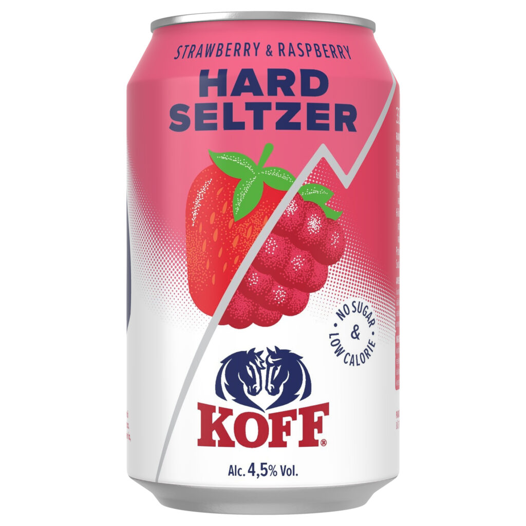 Keväällä 2026 KOFF astuu ensimmäistä kertaa hard seltzer -kategoriaan, joka kasvaa Suomessa edelleen voimakkaasti. Uusi seltzer-sarja sisältää kolme raikasta ja sokeritonta makua: Strawberry–Raspberry 4,5 %, Lemon–Lime 4,5 % ja Mango–Passionfruit 4,5 %. Visuaalisesti sarja nostaa panimohevoset Frederikin ja Gunnarin entistä näkyvämpään rooliin.