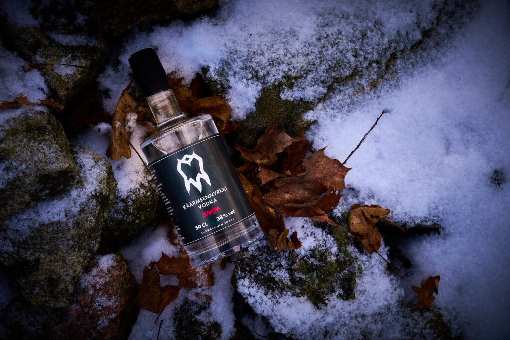 KÄÄRMEENNYRKKI Vodkassa korostuvat tislaamon mukaan Suomen luonnon puhtaat raaka-aineet, tinkimätön valmistusprosessi sekä pohjoisen raa’an melankolinen asenne – suomalaisittain sisuksi kutsuttu ominaisuus.