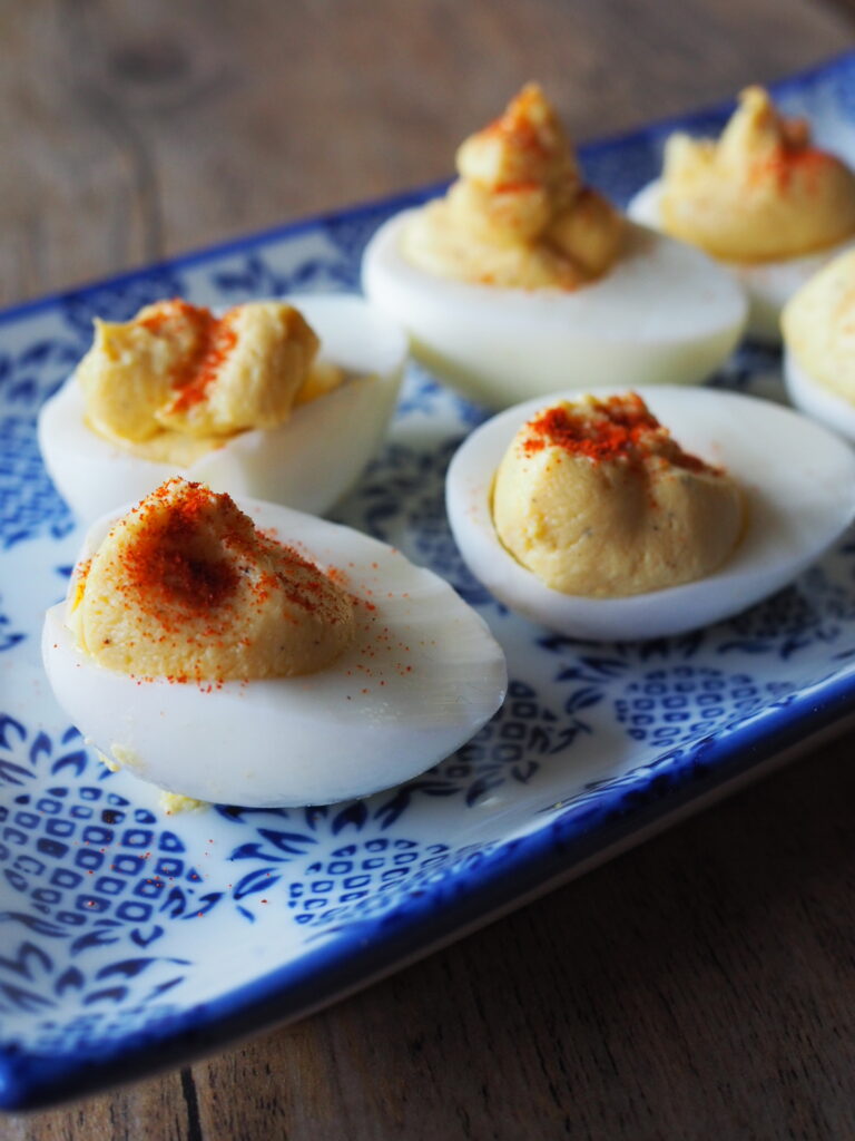 Oluella maustetut täytetyt kanamunat