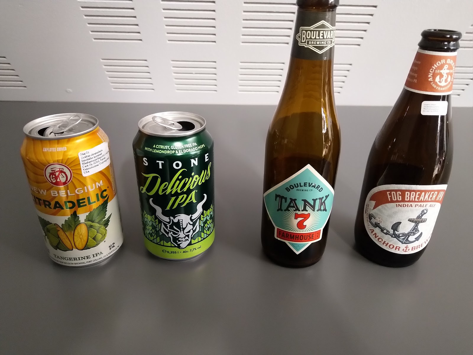 Alkon erikoiserissä heinäkuussa teemana ”Craft Beer USA” ja sen ideana esitellä ”ikonisten” craft-panimoiden tuotteita. Joskus nämä erikoiserien tulkinnat ovat olleet vähän hataria, mutta tässä kieltämättä onnistuttiin, sillä panimot todella ovat kaikki melkoisia jenkkiklassikoita: Stone, New Belgium, Boulevard ja Anchor. Onko jopa ensimmäinen kerta kun New Belgiumia on Suomessa ollut saatavilla? En ole varma. Boulevard on tietty nykyään Duvelin omistuksessa ja ei siten jenkkimääritelmien mukaan enää— craft, mutta merkittävä tekijä amerikan pienpanimoiden nousussa silti historialtaan.