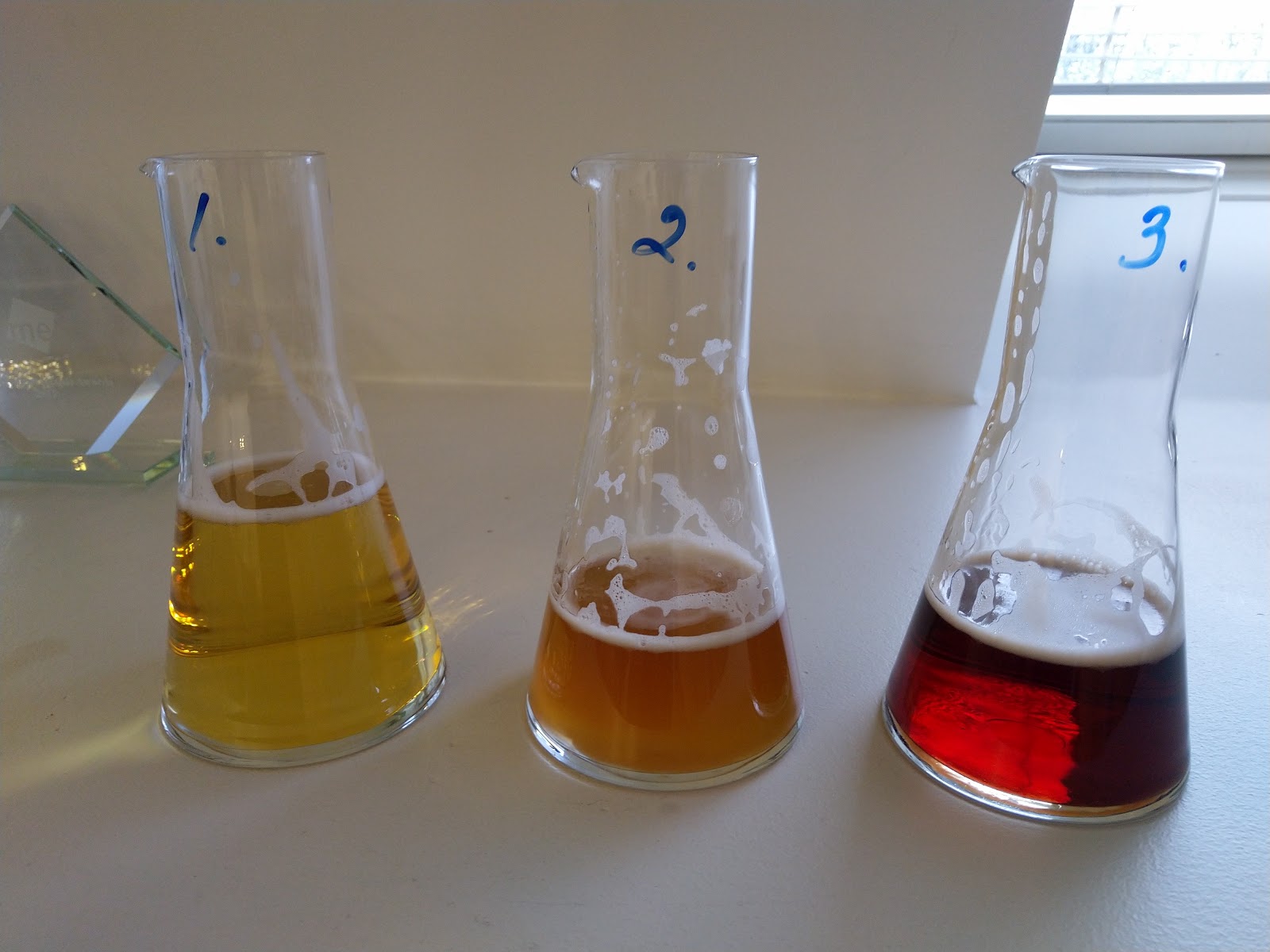 1. Samea, tumman keltainen olut. Tuoksussa on voimallisesti kukkaisuutta, makeaa sitrushedelmää. Meinaan napata inkivääriäkin, kunnes tajuan sen johtuvan siitä, että olut on tuoksultaan vain erittäin vappusimamainen. Siinähän on joskus inkivääriä raikastamassa. Maku on suora, simamaisuus jatkuu siinäkin. Selkeää sitruunaisuutta. Ei juuri katkeroa. Mausteisuutta tasapainona kylläkin. Pyöreä, helppo. Hyvällä mielikuvituksella tätä voinee pitää witbierinä, mutta kovin on eloton ja vähän tunkkainen.