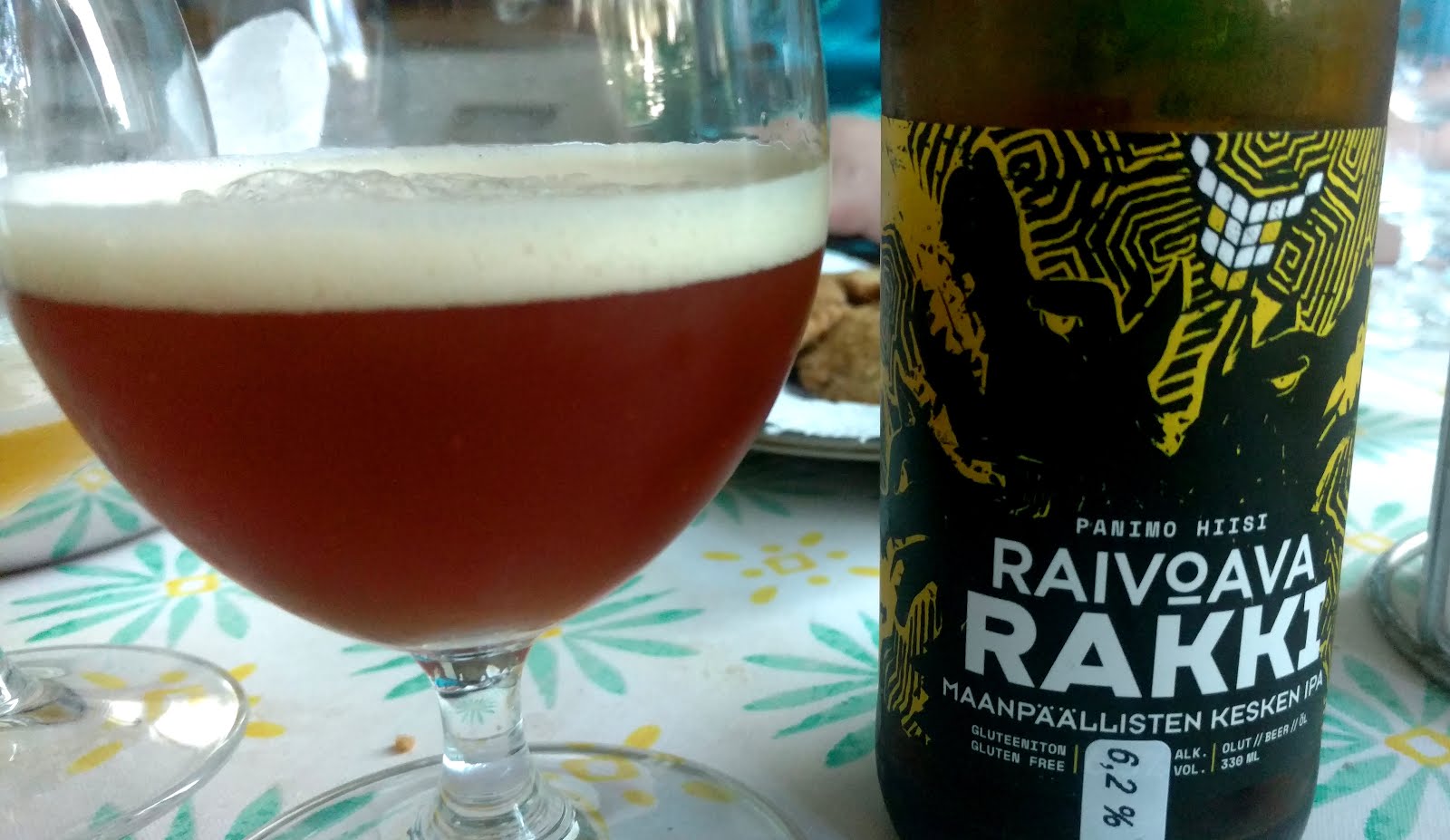 Hiisi Raivoava Rakki – Joku IPA piti tähän saada, koska se toimii mausteiden kanssa ja pärjää rasvallekin. Jyväskylän olutmaakarien versio tarttui mukaan, koska taisi olla käyttämäni pitkäripaisen tuoreinta ja muutenkin oli kulunut hetki edellisestä kerrasta.
