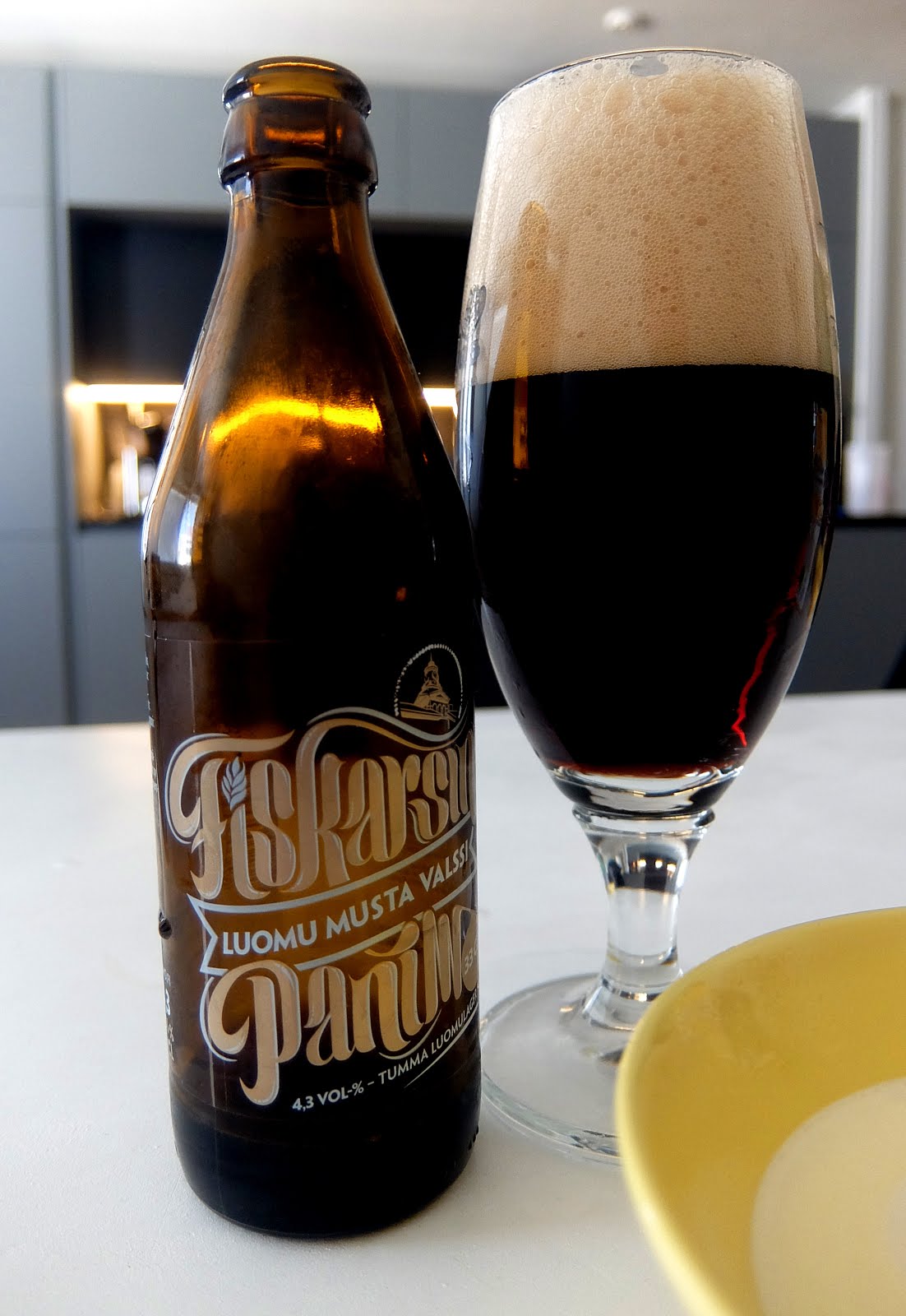 Kolmanneksi sitten villi kortti, jossa ajattelin, että olut itse voisi hoitaa sen viljan tehtävän. Mutta sekään ei saisi olla liian jyräävää. Niinpä mieto tumma lager, Fiskarsin/Mathildedalin Musta Valssi, joka on hyväksi havaittu.