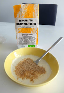 Yksi perinne on syödä viiliä talkkunan kanssa. Sattui olemaan talkkunaa kaapissa, niin testasin myös sen kera. Se auttoi hieman, makukomboon tuli viljaista tukevuutta lisää.