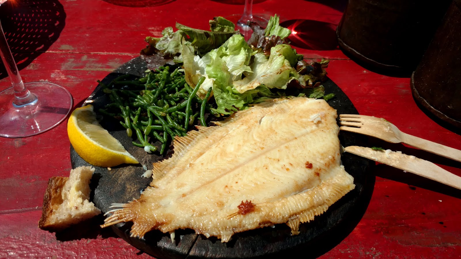 Viinikaupan viereinen modernin hipsterihtävä Oyster Club tarjoili lounaaksi ehkä retken parhaan annoksen. Simppeli sole meuniere— eli paistettu meriantura oli täydellistä ja sen kanssa tarjoiltu merikasvi— oli erityisen herkullista kamaa. Kokki kertoi sen olevan ”levää”, jota voi keräillä rannalta. Jälkitunnistin sen— suolayrtiksi.— Näppärästi Suomessa uhanalainen kasvi, niin ei tarvinne etsiskellä…