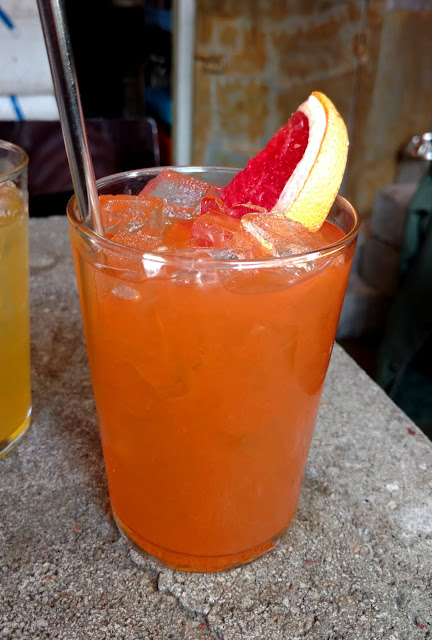 Tässä on sitten rapsakkaampaa lageria eli Sundog Lageria, verigreippiä, Aperolia ja sitruunaa. Hyvin raikas. Kesympi kuin edellinen. Luottaa verigreippiin. Noin kevyen oluen luonne hukkuu muilta osin, mutta runsaampi humalankatkero kietoutuu Aperolin katkeruuteen aika mielenkiintoisesti ja jää lopulta isoimpana asiana cocktailista mieleen. Ihan hyvää, mutta käsi meni jatkuvasti vieressä olevan Don Cloudyn suuntaan. Tämä oli yksioikoisempi.
