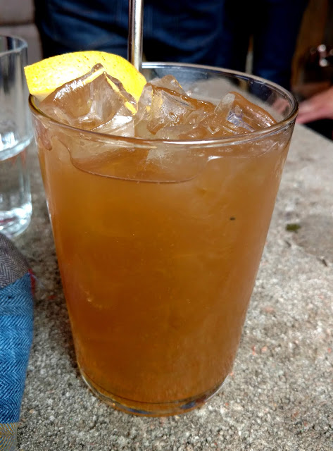 Huoh. Kuulkaas nyt mikkeliläiset. Jos haluatte tehdä Saimaahan liittyvän Long Island Ice Tea -nimileikin, niin se on silloin tietenkin Soisalo Ice Tea! Mutta olen valmis antamaan anteeksi moisen tökeryyden, sillä tämä oli kokeilemistani cocktaileista melkeinpä paras. Olutta, limoncelloa, sitruunaa ja jotain joka meni ohi korvain. Olut oli vaaleaa lageria (Marsalkkaa oletan, koska tölkki vilahteli tiskin takana). Tässä olut jää oikeastaan vain kevyen maltaiseksi rungoksi muille mauille, mutta eipä se haittaa. Hyvä limoncello parantaa kaiken mitä koskettaa ja tässä mukaan yhtyy hieman inkiväärinen ja noh, jääteemäinen, mausteisuus.