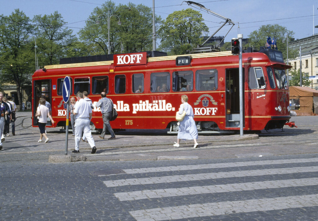Uudentyyppinen ravintola oli myös Spårakoff. Kuva Finna 1995, Helsingin kaupunginmuseo, Mika Peltola.