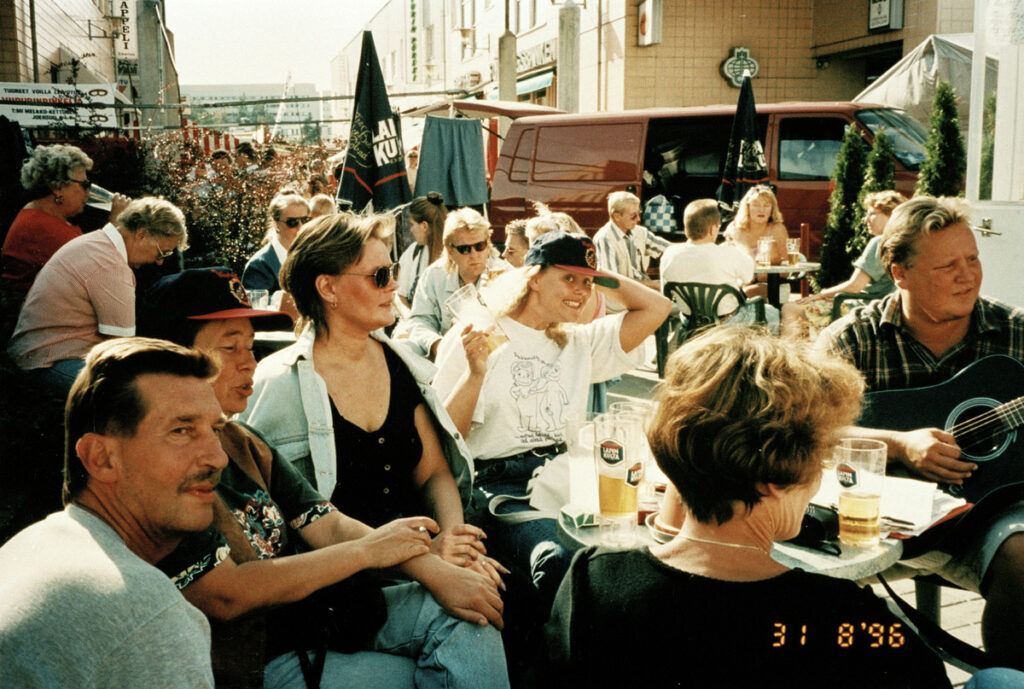 Aurinkoisia tunnelmia kesäterassilla Kontulan ostoskeskuksessa 1996. Finna: Helsingin kaupunginmuseo , Pentti Huttunen